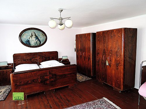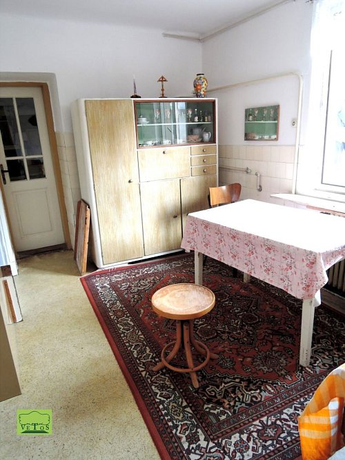 Hlavní budova - dům 5+1 je možno přebudovat i na více jednotek, (zastavěná plocha 215m2, užitná plocha hlavní budovy 159m2), obsahuje kuchyni, 4 pokoje, pracovnu ( šicí místnost, popř. černá kuchyně - dříve využívaná jako prodejna), velkou koupelnu a WC zvlášť, s dalšími prostorami spíže, mrazícího boxu jakož i další prostory využitelné pro obytné či podnikatelské účely (půdy, sklad).