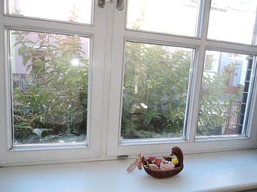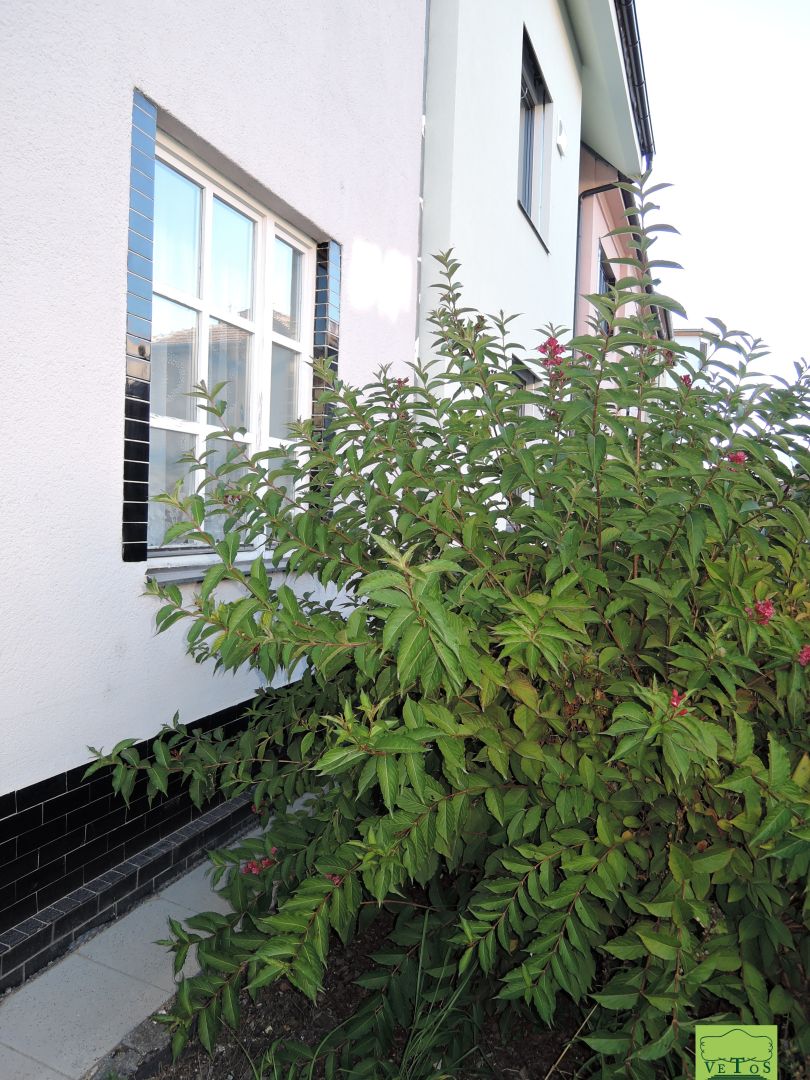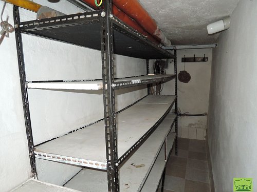 Vstup do chodby, z níž jsou vstupy do pokoje v přízemí, s výhledem do předzahrádky, do kuchyně s výhledem do vlastní zahrady, vstup do spižírny, WC, a dále po několika schodech dolů vstupujeme na terasu, na niž navazuje vlastní zahrada se zahradním domkem. Vedle dveří na terasu je vstup po schodech do rozměrné koupelny v suterénu se sprchou i vanou a sekčními prostory pro pračku, kotel na ohřev teplé vody a plynový kotel. Nelze zapomínat také na 2 sklepní prostory.
